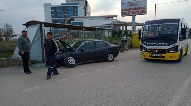 Bursa'da viraja hızlı giren alkollü sürücü, otobüs durağına daldı. Kazada durakta otobüs bekleyen bir kişi yaralandı.