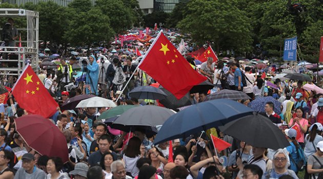 Bununla birlikte bu hafta Çin hükümetini ve polisi destekleyen vatandaşlarda da sokağa çıktı. Hükümet destekçisi protestocular ise Çin bayrakları açarak bölgede devam eden protestoların son bulmasını talep etti.