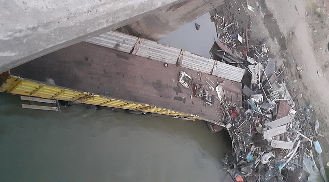 Hurda yüklü çekici köprüden düştü