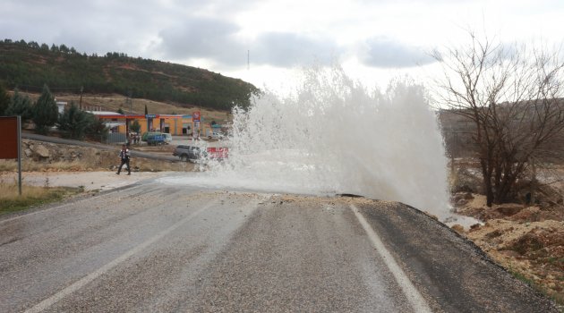 Adıyaman-Malatya Karayolunun altından geçen içme suyu hattında meydana gelen patlama sonrasında yol savaş alanına döndü. Patlayan borudan çıkan sular metrelerce yükseldi.