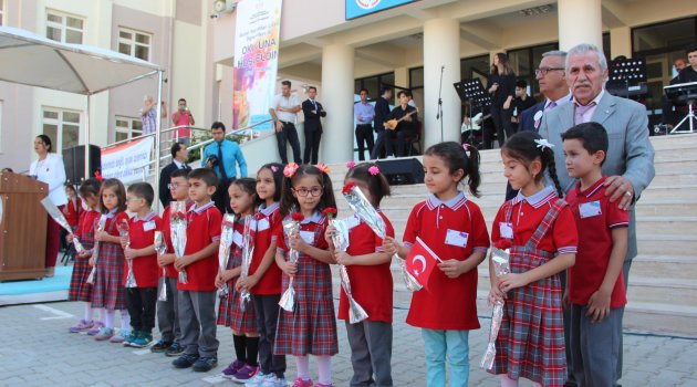 Yapılan konuşmaların ardından okula ilk başlayan 1’inci sınıf öğrencilerine 4’üncü sınıf öğrencileri tarafından “hoş geldin çiçeği” verildi.