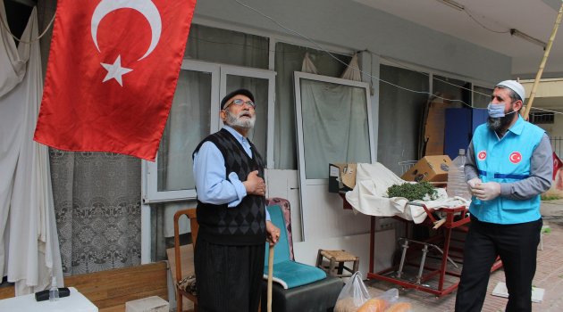 Muratpaşa İlçe Müftülüğüne bağlı İsmet Yüce Cami İmamı Hasan Koç, 65 yaş ve üstü ve kronik rahatsızlıkları nedeniyle sokağa çıkamayan vatandaşların ihtiyaçlarını karşılıyor.