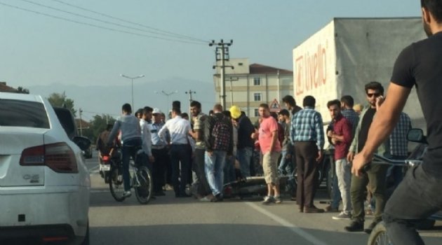 İlk kaza Kozluca yolu üzerinde meydana geldi. Ali Y, fırına gitmek için 16 KOP 11 plakalı aracını yol kenarına geçti. Arabadan inmeye hazırlanan şahsın aracına aynı istikamette seyreden Suriye uyruklu H.A'nın kullandığı plakasız motosiklet arkadan çarptı. Çarpmanın etkisiyle motosikletten düşen sürücü kafasını yere çarptı. Kazayı gören vatandaşlar yaralının yardımına koştu. Müdahalenin ardından yaralı ambulansla İnegöl Devlet Hastanesi Acil Servisine kaldırıldı.