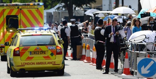 Yüzlerce kişi düşesin Londra'da yattığı St. Mary's Hastanesi önünde toplandı.