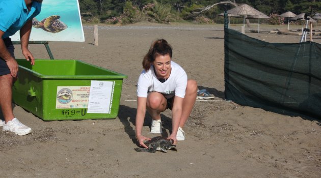 İngiltere güzeli Alisha Cowie, Dalyan İztuzu’nda bulunan Deniz Kaplumbağaları Araştırma Kurtarma ve Rehabilitasyon Merkezi’nde (DEKAMER) kaplumbağaları inceledi. Yapılan program kapsamında Cowie, yavru caretta carettayı denize bıraktı.
