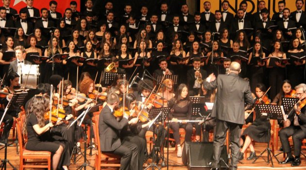 Koro Şefi Prof. Dr. Ersan Çiftçi yönetiminde 140 kişilik koro, 10 eseri seslendirdi.