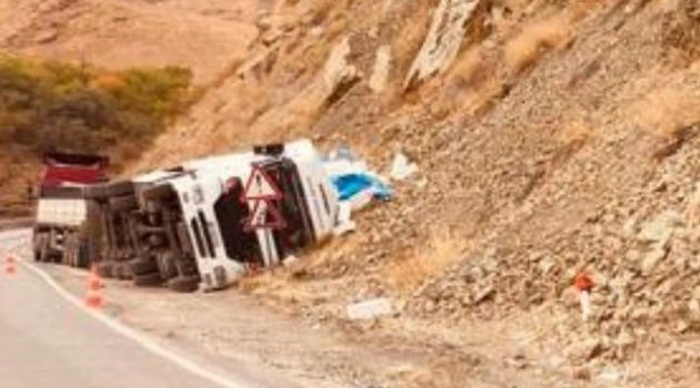 Van'dan Yüksekova'ya inşaat malzemesi götüren tır, virajı alamayarak devrildi. Sürücü kazayı hafif sıyrıklarla atlatırken, karayolunda güvenlik önlemi alındı.