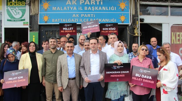 27 Mayıs 1960 askeri müdahalenin yıldönümü dolayısıyla AK Parti Genel Merkezi İnsan Hakları Başkanlığı’nca hazırlanan metin 81 ilde eş zamanlı olarak okundu. Malatya’da da açıklamayı AK Parti Malatya il Başkan Yardımcısı Kahraman Kavuk okudu. 27 Mayıs darbesini demokrasiye ve vicdanlara yönelik büyük bir ihanet olarak nitelendiren Kavuk, “Türk milletini tepeden dizayn etmeye çalışan toplum mühendisliğinin temelleri Cumhuriyet döneminde gerçekleştirilen ilk darbe olma özelliğini taşıyan 27 Mayıs 1960 Askeri Müdahalesi ile atılmıştır. Vesayet ve statükonun hüküm sürdüğü bir anlayışı gerçekleştirilen 27 Mayıs Darbesi, milli iradeden kopan bir zihniyetin ürünü olarak; demokrasiye, İnsanlığa ve vicdanlara yönelik büyük bir ihanettir. Seçilmiş bir başbakanın idama mahkum edilmesiyle demokrasi tarihimizde silinmez bir leke oluşturan 27 Mayıs Darbesi ilerleyen süreçte askeri otoriteye, milli iradeyi silah zoruyla tahakküm altına alma imkanın kapılarını da açmıştır. Dönemin tek partili CHP yönetimine karşı rekor bir oyla iktidara gelen Adnan Menderes ve yol arkadaşları, kısa zamanda gerçekleştirdikleri projelerle Türkiye'ye çağ atlatılmıştır. Milli ve manevi değerlerimizi Anadolu topraklarından silmeye çalışan tek parti CHP'sinin antidemokratik uygulamalarını izale eden merhum Menderes, özellikle din ve vicdan özgürlüğü adına attığı adımlarla milletimizin gönlünde taht kurmuştur. Tek parti rejiminin en büyük ayıplarından olan Türkçe ezanı özüne döndürerek Anadolu'nun dağında taşında, havasında suyunda Ezanı Muhammed’inin tekrar yankılanmasını sağlamıştır. Tek partili hayattan kalma sorunlara çözüm getiren Menderes'in halkla kurduğu sıkı bağdan rahatsız olanlar yalan ve iftiralarla algı oluşturarak darbeye zemin hazırlamıştır. Milletin iradesini hiçe sayan cuntacı zihniyet, demokratik yönetime antidemokratik yöntemlerle el koyarak seçilmiş yöneticileri tutuklamış Yassı ada'da hukuk dışı yargılamaların ardından darağacına göndermiştir. Mahkeme Başkanı Salim Başol'un, "Sizleri buraya tıkan irade böyle İstiyor” sözleri hukuksuz yargılamaların apaçık yaşandığı bu dönemleri tarihe kara bir sayfa olarak işlemiştir" ifadelerini kullandı.