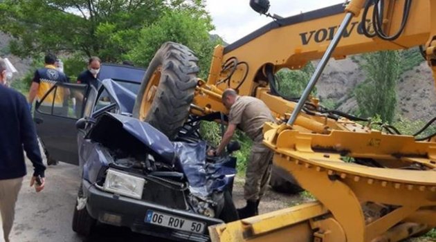 İş makinesiyle otomobil çarpıştı: 1 ölü