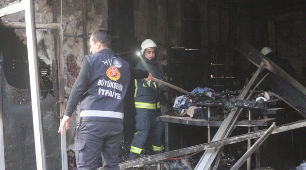İtfaiye ekipleri müdahale sonrası iş yerinden incelemelerde bulundu.