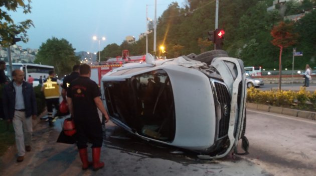 İşaret levhasına çarpan araç takla attı: 1 yaralı