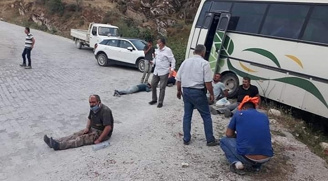 Aydın'ın Karpuzlu ilçesinde maden işçilerini taşıyan servis otobüsü kaza yaptı. Kazada 14 işçi yaralandı.