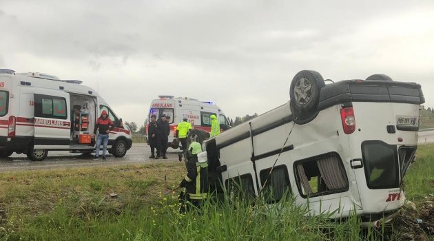 İşçileri taşıyan minibüs devrildi: 7 yaralı