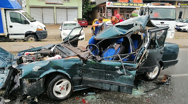 Ordu'nun Ünye ilçesinde meydana gelen trafik kazasında alkollü olduğu iddia edilen bir sürücü ışıkta bekleyen araçlara çarptı. Kazada otomobilde sıkışan sürücü uzun uğraşlar sonucu kurtarıldı.