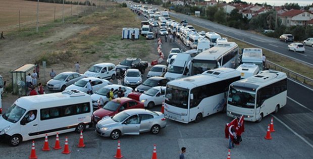 D-100 Karayolu'nun cezaevi sapağında durdurulan otobüsün cezaevi bölgesine girişine izin verilmedi.