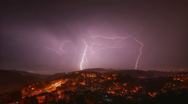 İskenderun'da şimşekler geceyi gündüze çevirdi