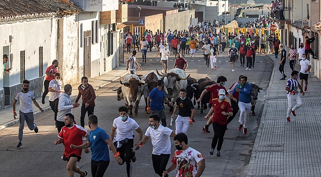 Salgın nedeniyle İspanya’da hala birçok kısıtlama devam ederken, yaklaşık 2 bin nüfuslu Villaseca de la Sagra kasabası ülkede boğa koşusunun yapıldığı ilk şehir oldu.