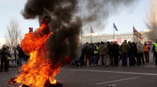 İspanya'da taksiciler uluslararası turizm fuarına giden yolları kapattı