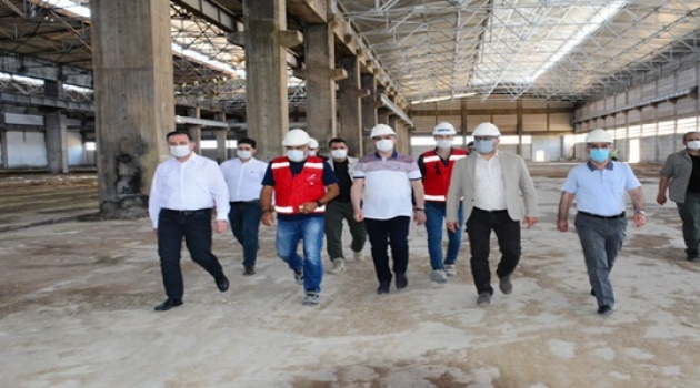 Vali Aydın Baruş, Kızılay tarafından eski Vagon Fabrikası yerleşkesinde yapımına başlanan Afet Barınma Sistemleri işletmesinin inşaatını inceledi.