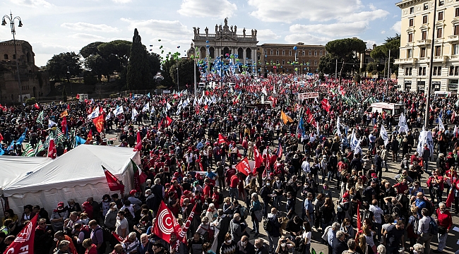 İtalya'da sendikaların çağrısı ile toplanan yaklaşık 200 bin kişi faşizme karşı yürüdü.