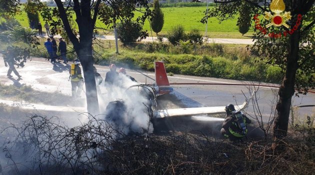 İtalya'da tek motorlu uçak düştü; 1 kişi öldü, 3 kişi yaralandı.