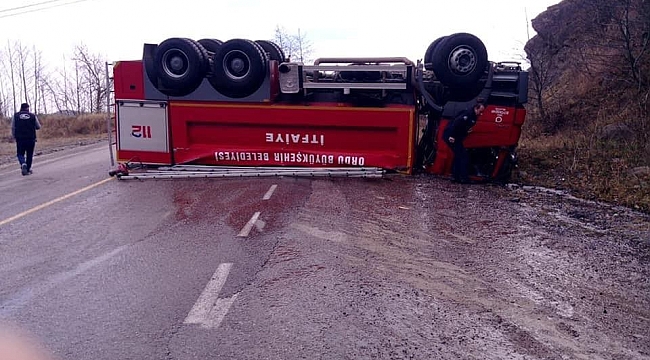 Ordu'nun Akkuş ilçesinde yangına müdahale etmeye giden itfaiye aracının devrildiği kazada 2 itfaiye personeli yaralandı.