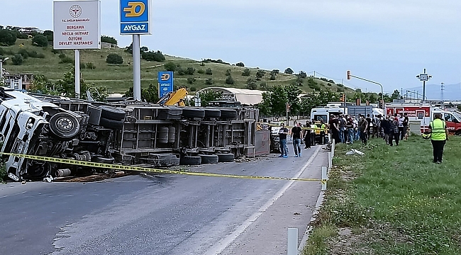 Edinilen bilgiye göre, kaza, saat 13.00 sıralarında Bergama-Kınık yolu üzerinde bulunan Bergama Necla Mithat Öztüre Devlet Hastanesi kavşağında meydana geldi. İddiaya göre, Ramazan Çınar hakimiyetindeki 35 AH 010 plakalı taksi, kırmızı ışıkta kavşaktan karşıya geçmek isterken Kınık istikametinden gelen Murat Soydan idaresindeki 10 ABS 837 plakalı tırla çarpıştı. Çarpışmanın etkisiyle kontrolden çıkan tır, kaldırıma çıkarak kaldırım üzerinde hastaneye gitmekte olan isimlerinin Özgür Aydemir (37) ve Erol Yılmaz (46) olduğu öğrenilen yayalara çarparak altına aldı. Çevredekilerin ihbarı üzerine olay yerine gelen 112 Acil sağlık ekipleri, Erol Yılmaz’ın olay yerinde hayatını kaybettiğini belirledi. Kazada yaralanan tır şoförü Murat Soydan, taksi şoförü Ramazan Çınar ve taksideki yolcular Numan Ş., Zehra Ş. ve Şerife G., Bergama Necla Mithat Öztüre Devlet Hastanesi’ne kaldırıldı. Yaralılardan durumu ağır olan Özgür Aydemir, tüm müdahalelere rağmen kurtarılamayarak hayatını kaybetti.