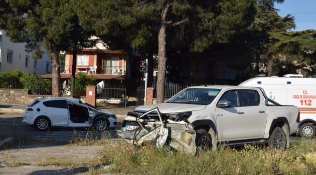 Kaza, saat 18.00 sıralarında İzmir – Çanakkale Karayolu üzerindeki plaj kavşağında meydana geldi. O.K.'nin (29) kullandığı 35 AHH 937 plakalı otomobil, kavşakta H.E.'nin (67) kullandığı 34 BFH 036 plakalı kamyonet ile çarpıştı. Kazada sürücü O.K. (29) ile yolcu H.K. (27) yaralandı. Yaralılar, olay yerine gelen ambulansla Aliağa Devlet Hastanesi'ne kaldırılarak, tedavi altına alındı.