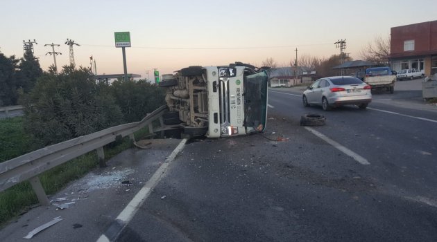 İzmir'in Menemen ilçesinde, belediyeye ait çöp kamyonunun devrilmesi sonucu meydana gelen kazada 3 kişi yaralandı.