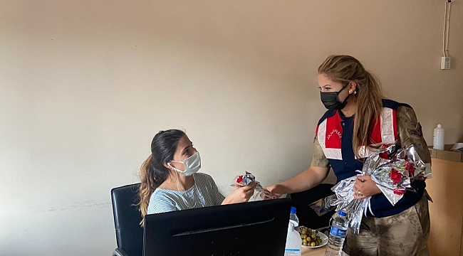 Ziyaret sırasında, kadın jandarma görevlileri, sağlık çalışanlarına, karanfil ve ayna hediye ederek, sağlık çalışanlarının Halk Sağlığı Haftası’nı kutladılar.