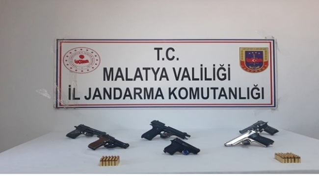 Malatya İl Jandarma Komutanlığı ekipleri tarafından ev ve iş yerlerinde yapılan operasyonda 6 adet tabanca ve çok sayıda fişek ele geçirildi. Konuyla ilgili 2 zanlı yakalandı.