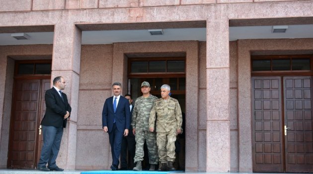 Orgeneral Çetin ve Orgeneral Temel, Valilik şeref defterini imzalamalarının ardından, Valilik makamında Vali Baruş ile bir süre görüştü.
