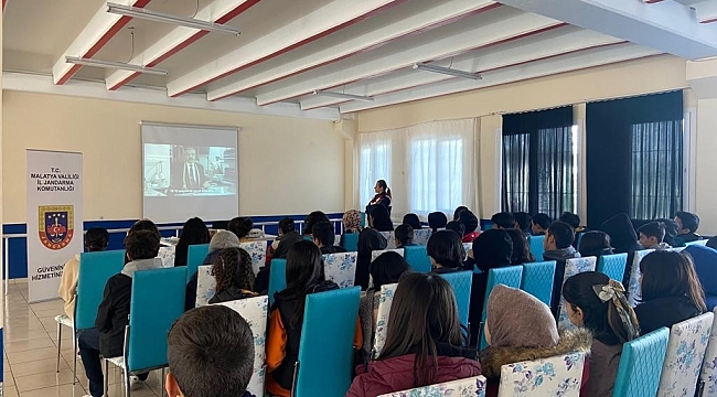 Malatya'da jandarma tarafından öğrenci ve öğretmenlere madde bağımlılığı siber suçlarla mücadele ile evlilik öncesi eğitim konularında bilgilendirme yapıldı.