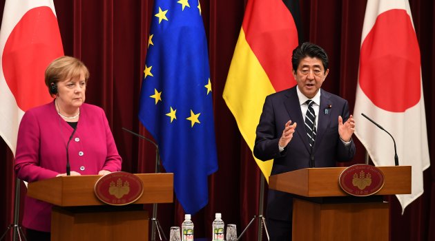 Merkel temasları kapsamında Japon mevkidaşı Şinzo Abe ile bir araya geldi. Japonya Başbakanı Abe Avrupa Birliği (AB) ve Japonya arasında imzalanan serbest ticaret anlaşmasının dünyanın en büyük serbest ticaret alanının oluşturduğunu belirterek, "Uluslararası devletler topluluğu adına Japonya ve Almanya’nın sorumlulukları giderek artıyor" dedi.