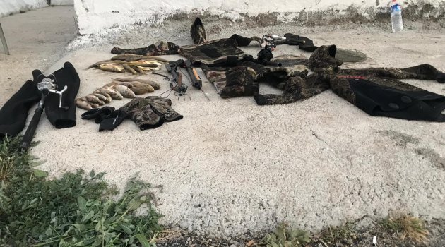 Kahramanmaraş’ın Elbistan ilçesinde jandarmanın yaptığı yol uygulamasında kaçak olarak avladıkları balıklar ve av malzemeleri ile birlikte yakalanan 2 kişiye bin TL idari para cezası kesildi.
