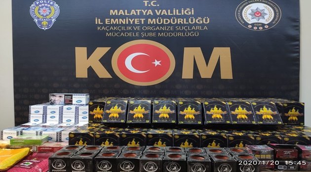Malatya İl Emniyet Müdürlüğü Kaçakçılık ve Organize Suçlarla Mücadele (KOM ) Şube Müdürlüğünce yapılan çalışmalar neticesi, Sivas caddesinde bir iş yerinde yapılan aramada, 5 bin adet gümrük kaçağı makaron, 118 kilogram gümrük kaçağı nargile kömürü, 18 adet gümrük kaçağı nargile lülesi, 6 kilogram gümrük kaçağı nargile tütünü ele geçirildi.