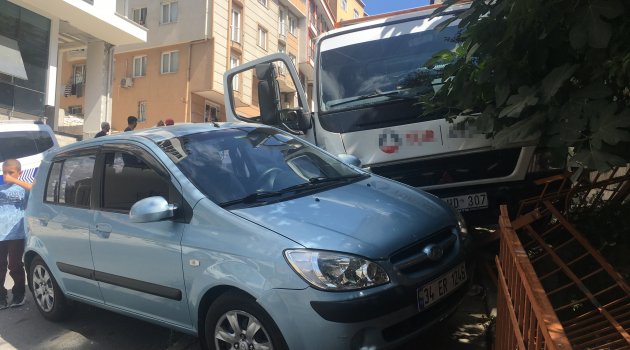 Kağıthane’de yokuş indiği esnada freni patlayan çekici park halindeki üç otomobil ve bir evin bahçe duvarına çarparak durabildi. Kazada şans eseri ölen yada yaralanan olmazken, mahalleli sürücüye tepki gösterdi.