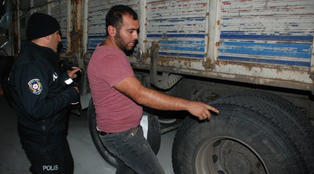 Tokat Belediyesi itfaiye ekipleri balataları kızarak duman çıkan kamyonun lastiklerini yanma ihtimaline karşı kontrol etti. Polis ekipleri olayla ilgili inceleme başlattı.
