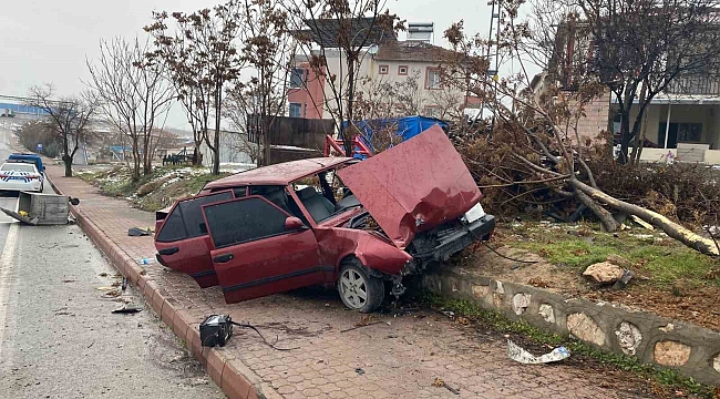 Malatya'da sürücünün kontrolünden çıkan otomobil çıktığı kaldırımda ağacı yerinde söktü. Kazada 2 kişi yaralandı.