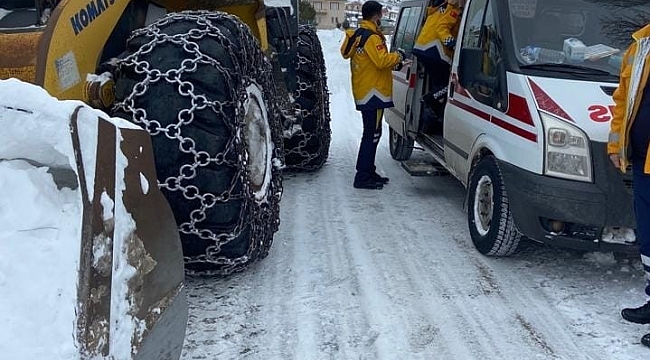 Malatya'da hastaneye gitmesi gereken kalp hastasına karlı yollar açılarak ulaşıldı.