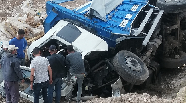 Afyonkarahisar’da kontrolden çıkarak yaklaşık 10 metrelik şarampole devrilen patates yüklü kamyonun kabininde sıkışan sürücüsü, kurtarma ekiplerinin uzun süreli uğraşı sonucu sıkıştığı yerden çıkarıldı.