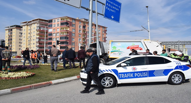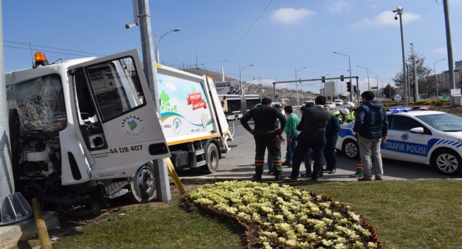 Edinilen bilgilere göre, İ.Ç. yönetimindeki 44 DB 407 plakalı çöp kamyonu D.Ç. idaresindeki 44 LF 025 plakalı otomobil ile kavşak içerisinde çarpıştı.Çarpışmanın şiddeti ile savrulan çöp kamyonunun yön levhasına vurarak durduğu kazada,araç sürücüleri İ.Ç.,D.Ç. ile N.A.,K.A.A.,S.Ç.,H.A.Ç.,B.İ.Ç.,H.Y.,H.İ.Y, yaralandı.İhbar üzerine olay yerine polis ve sağlık ekipleri sevk edildi.Yaralılardan durumu ağır olan çöp kamyon sürücüsü İ.Ç. ile birlikte H.Y.,H.İ.Y. Turgut Özal Tıp Merkezine diğer yaralılar ise Malatya Eğitim ve Araştırma Hastanesine kaldırılarak tedavi altına alındı.