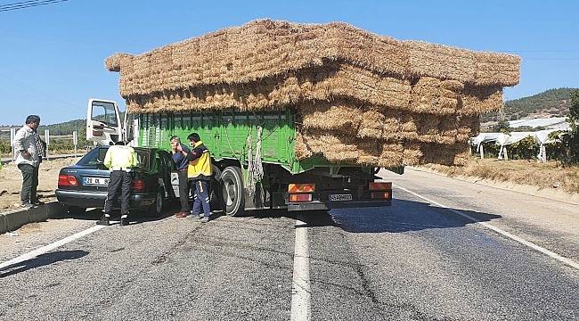 Manisa'nın Sarıgöl ilçesinde saman yüklü bir kamyona çarpan otomobilde bulunan biri çocuk 4 kişi yaralandı.