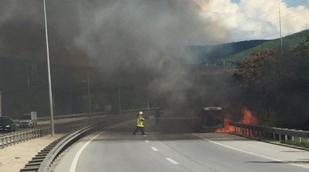 Olay, Ankara yolundan Bursa'ya geliş Turanköy rampasında meydana geldi. Edinilen bilgiye göre, seyir halindeki bir kamyonet biranda alev almaya başladı. Kısa sürede büyüyen yangın, kamyoneti kül etti. İtfaiye ekiplerinin müdahalesi sonra kamyonet söndürüldü. Trafik bir süreliğine kapanırken, kamyonet küle döndü.