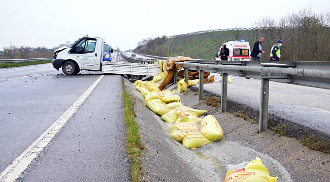 Edinilen bilgilere göre, Karasu istikametinden Adapazarı istikametine seyir eden Ahmet Ö. idaresindeki 54 RH 601 plakalı Ford marka gübre yüklü kamyonet, sürücüsünün direksiyon hakimiyetini kaybetmesi sonucu bariyerlere çarptı. Çarpmanın etkisiyle kamyonetin kasasında bulunan 50’şer kiloluk gübre çuvalları yola saçıldı. İhbar üzerine olay yerine sağlık ve jandarma ekipleri sevk edildi. Kazada hafif yaralanan sürücü Ahmet Ö. sağlık ekipleri tarafından ayakta tedavi edildi. Jandarma ekipleri olay yerinde trafik akışını sağlarken, Karayolları Genel Müdürlüğü ekipleri yola saçılan gübreleri temizledi.