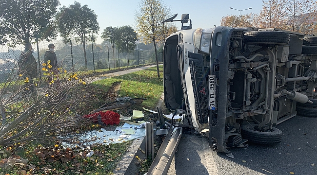 Şişli’de bir aracın çarptığı kamyonet bariyerleri aşarak çimenlik alana devrilirken, yaralanan olmadı.