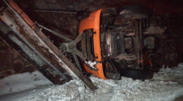 Edinilen bilgilere göre,Karayolları Karahan bakım evine ait Karip Çelik yönetimindeki 23 AP 831 plakalı kar kürüme aracı yolda çalışma yaptığı esnada buzlanma nedeniyle devrildi.Kazada araç sürücüsü Karip Çelik