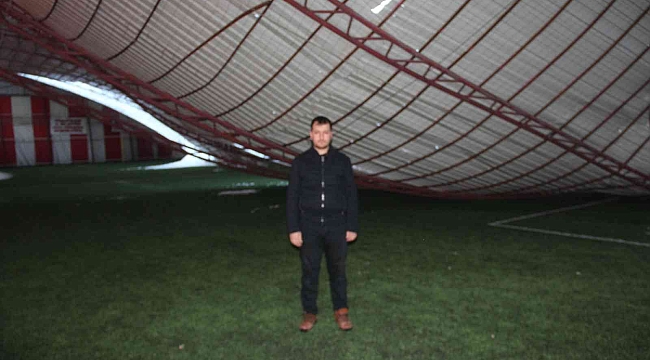 Malatya'da etkili olan kar yağışı nedeniyle bir halı sahanın çatısı çökerken, kimsenin olmadığı sırada çöken çatı kullanılamaz hale geldi. Halı sahanın çökmesi güvenlik kamerasına saniye saniye yansıdı.