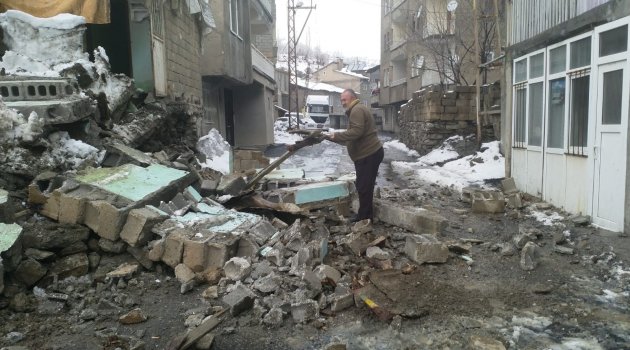 Çökme esnasında can kaybı yaşanmazken, yola saçılan molozlar ise ev sahibi tarafından yoldan temizlendi.