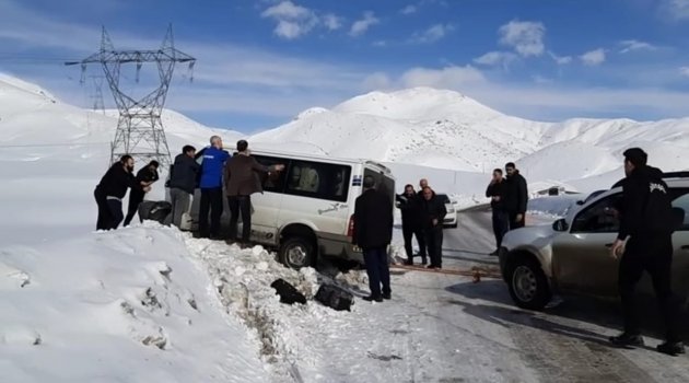 Öğrencilerin bulunduğu minibüs buzlanma nedeniyle kayıp kara saplandı. Minibüs, olay yerinden geçen sporcuların müdahalesi ile kurtarıldı.